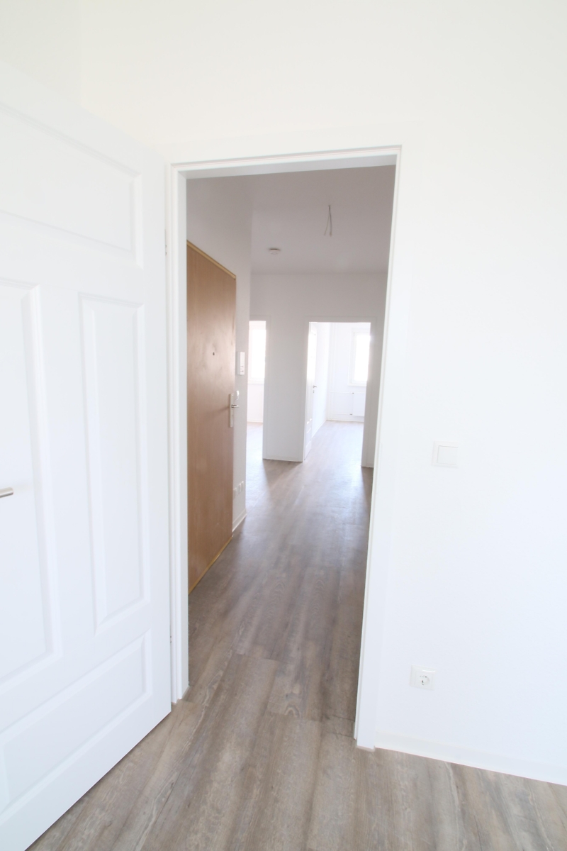 Die Wohnung wurde hochwertig saniert. Der Fußboden ist mit Design-Belag ausgestattet, die Wände sind Raufaser weiß tapeziert. Das Bad besitzt eine Dusche, moderne Fliesen, ein Wand-WC mit Einbauspülkasten, ein neues Waschbecken und neue Armaturen. Die Küche wurde mit einem neuen Fliesenspiegel versehen. Die gesamte Elektroanlage und die Zimmertüren wurden erneuert. Digitales TV empfangen Sie über unsere Genossenschaft. Ebenso steht eine Internetanbindung zur Verfügung.